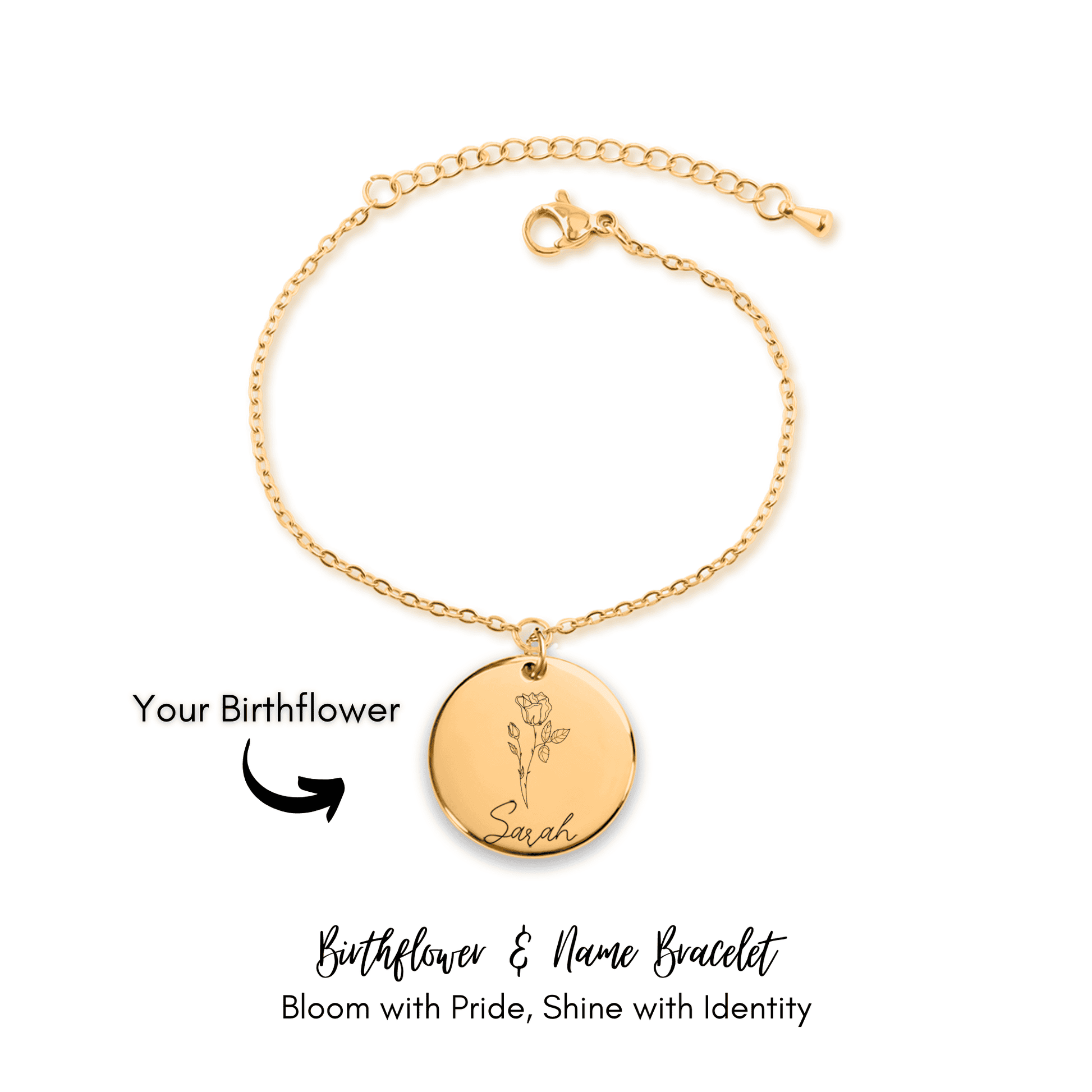 Create a truly unique gift by personalizing this bracelet with a name and a birth flower. Optionally, you can choose to give the bracelet an even more personal touch by adding a custom message or coordinates on the back.