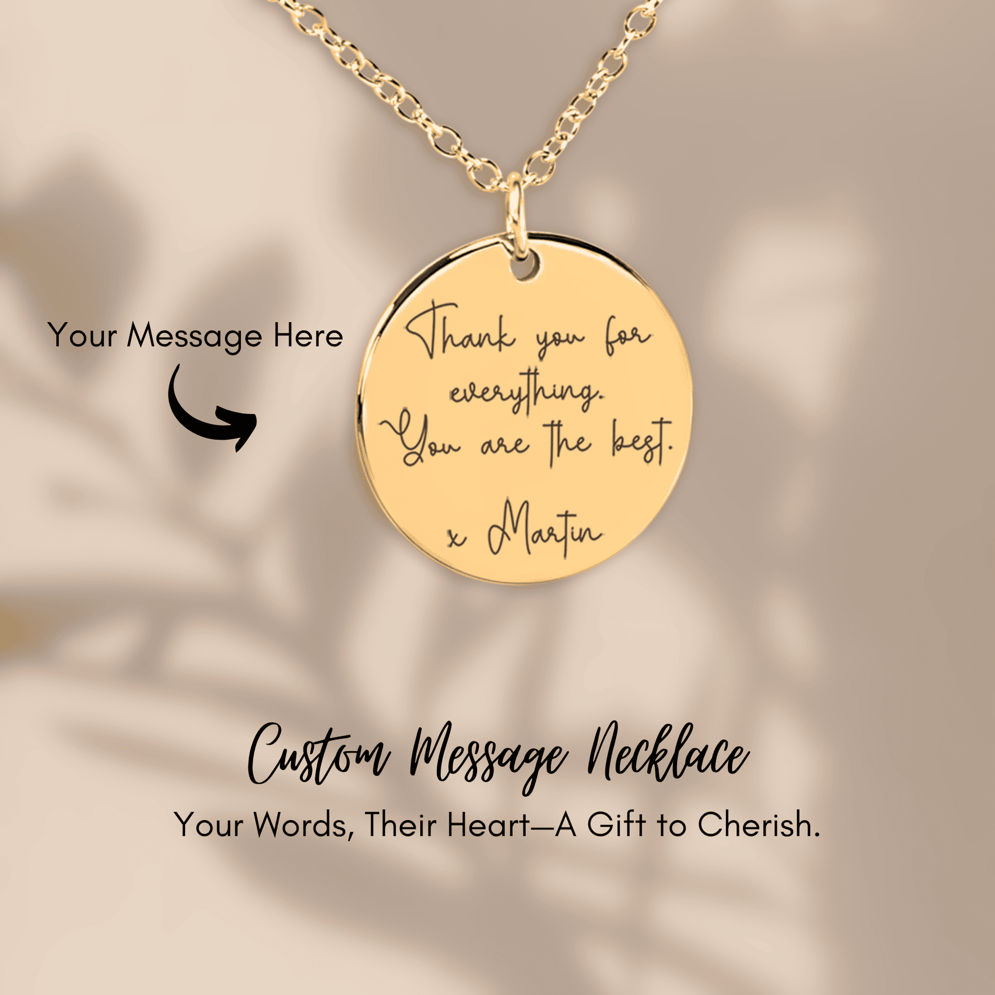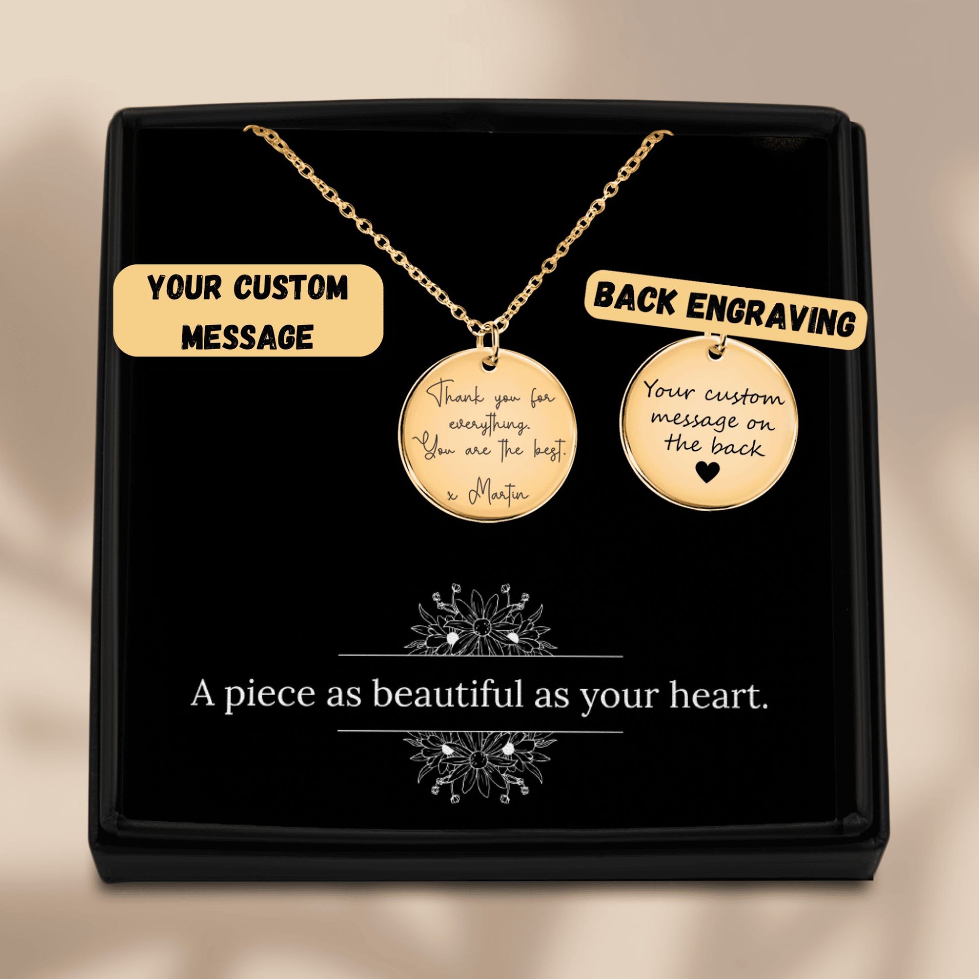 More than just a necklace…create a truly unique gift or memorial keepsake by personalizing this necklace with a custom message or quote. It can be anything from a birthday wish, a funny gift to a friend, or a quote that you love. Optionally, you can choose to give the necklace an even more personal touch by adding a custom message or coordinates on the back.