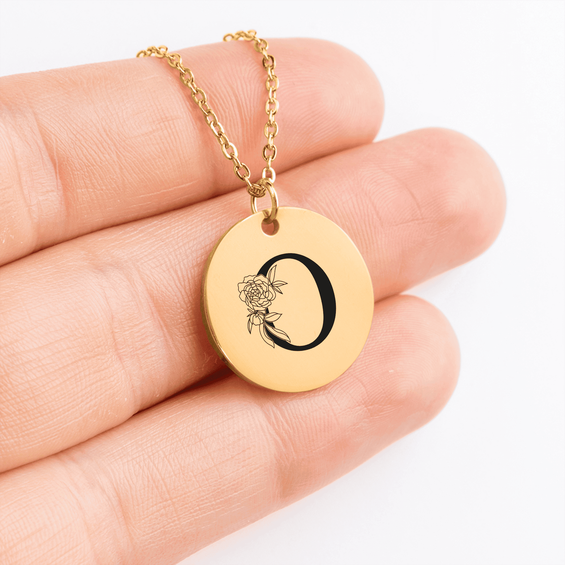 Crafted with care and available in Stainless Steel, 18k Gold plated, or 18k Rose Gold plated, this necklace can be personalized with your chosen initial, making it a truly unique expression of elegance and individuality. The delicate floral design on the initial adds a touch of nature-inspired beauty, perfect for celebrating yourself or someone special.