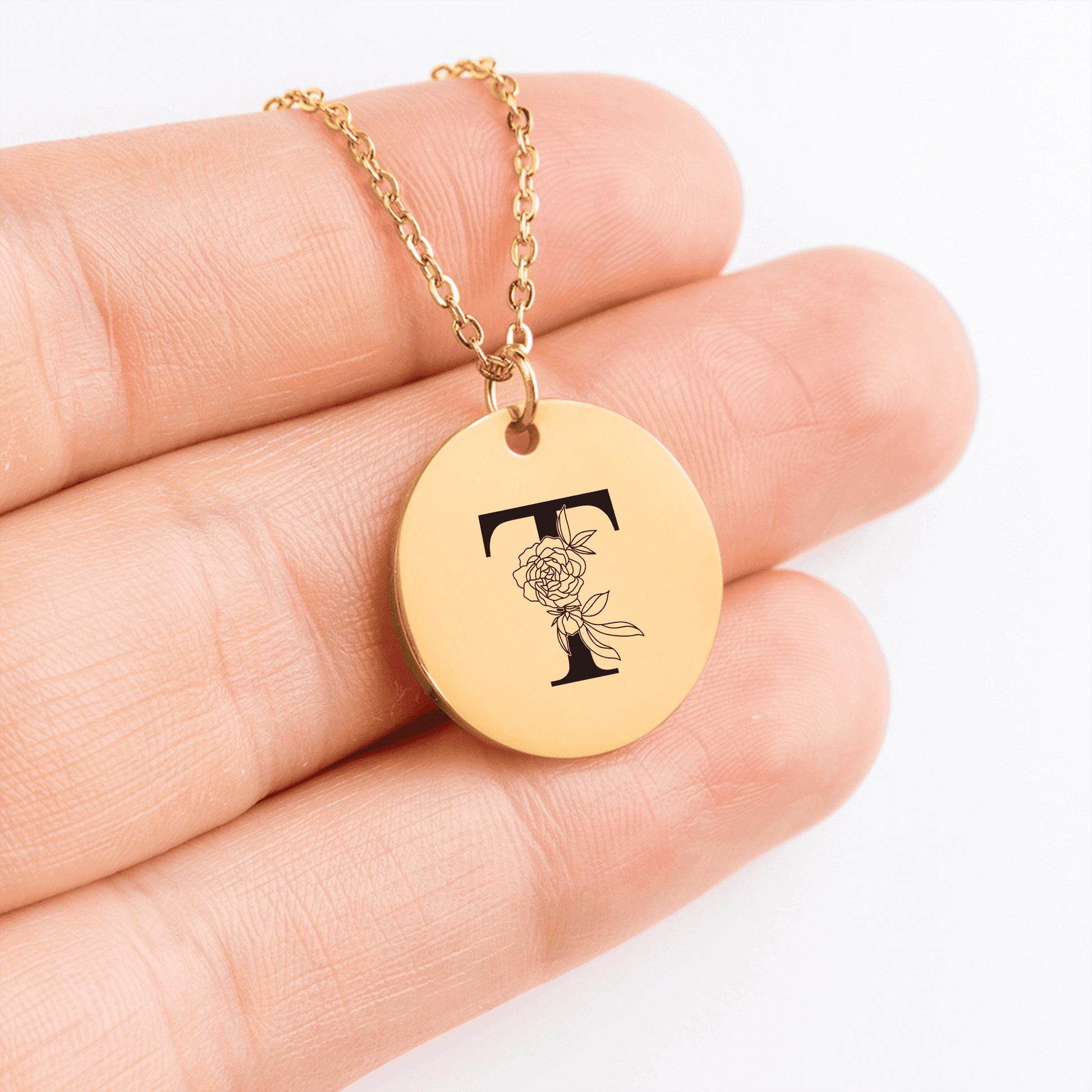 Crafted with care and available in Stainless Steel, 18k Gold plated, or 18k Rose Gold plated, this necklace can be personalized with your chosen initial, making it a truly unique expression of elegance and individuality. The delicate floral design on the initial adds a touch of nature-inspired beauty, perfect for celebrating yourself or someone special.