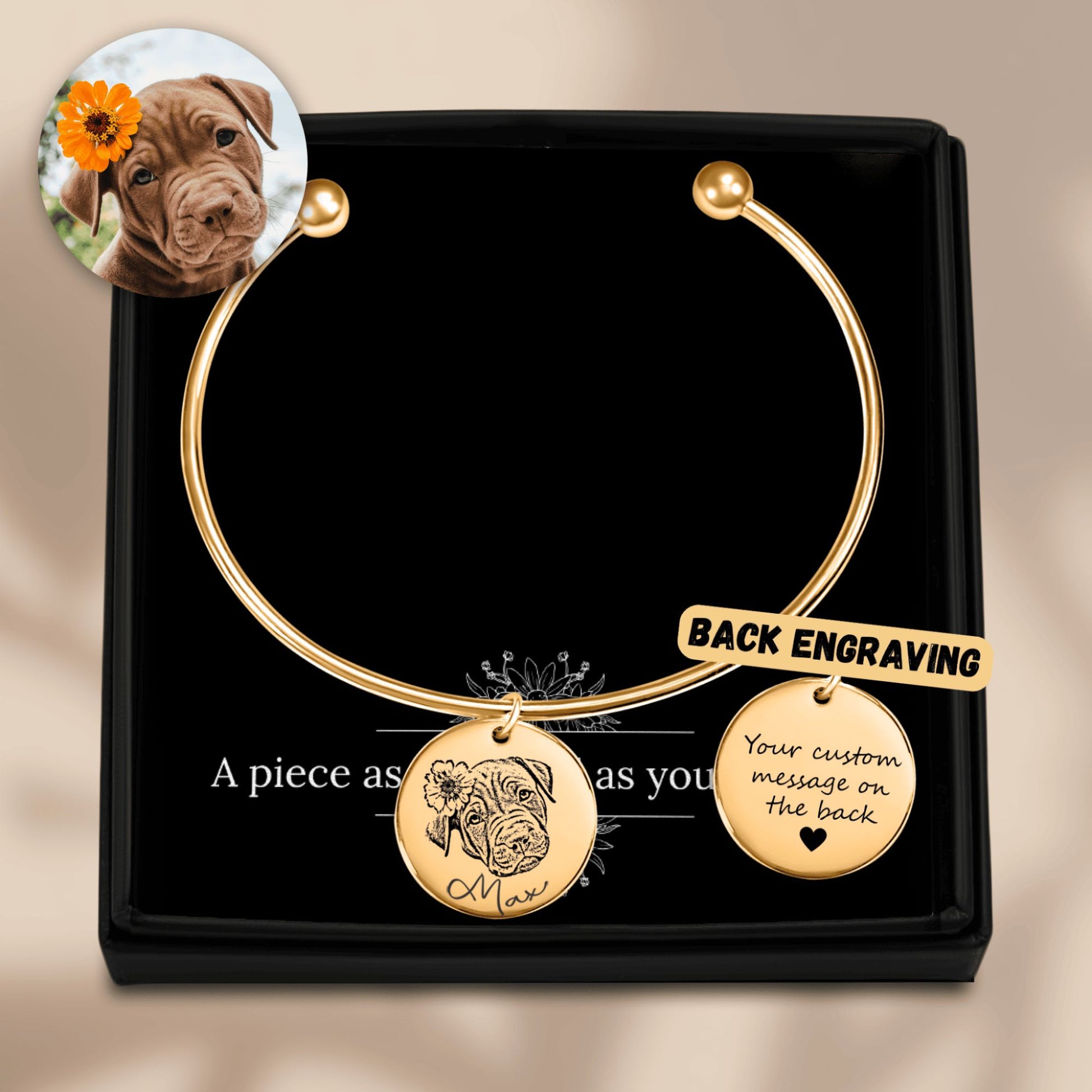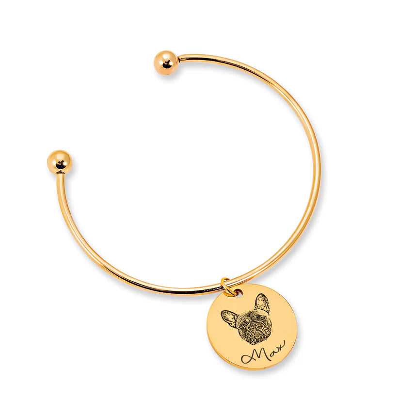 More than just a bangle…to our best friends, the small, the big, the furry, the feathered…the ones that bring joy to our lives. Honour them and always keep them by your side with this personalized bangle. Personalize it with the picture of any pet and their name and keep them close to your heart forever. Optionally, you can choose to give the bangle an even more personal touch by adding a custom message on the back.